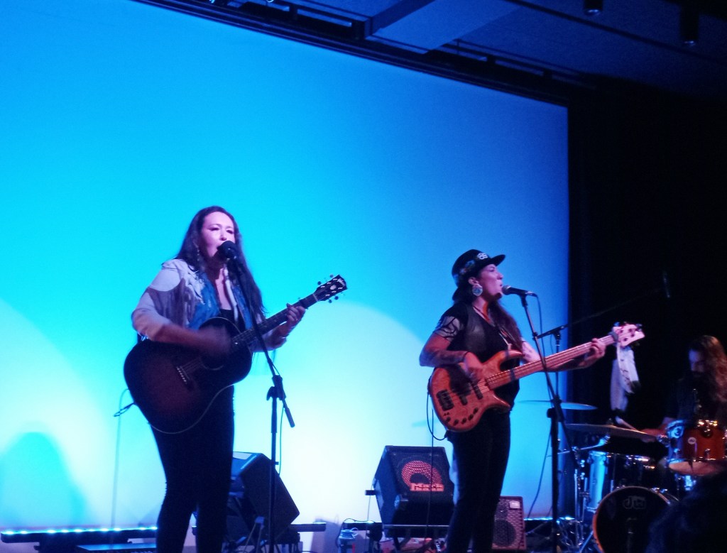 Digging Roots est un groupe de l’Ontario composé du duo marié Raven Kanatakta and Shoshona Kish. Shoshona est Anishinaabe de la première nation Batchewana qui a grandi à Toronto et Raven est Anishinaabe et Mohawk qui vient de Winneway au Québec et ensemble ils font de la musique qui est une mélange de rock, de blues, de folk, et de spoken word. Les chansons sont écrites sur des enjeux, le colonialisme, la politique, la violence, l’environment, et quand ils jouaient sur la scène on pourrait sentir l’enthousiasme et la colère dans leurs voix et les riffs forts de Raven à la guitar électrique. Leur dernier album, sorti en juin, s’appelle Zhawenim et veut dire «l’amour inconditionnel» en Anishinaabemowin.