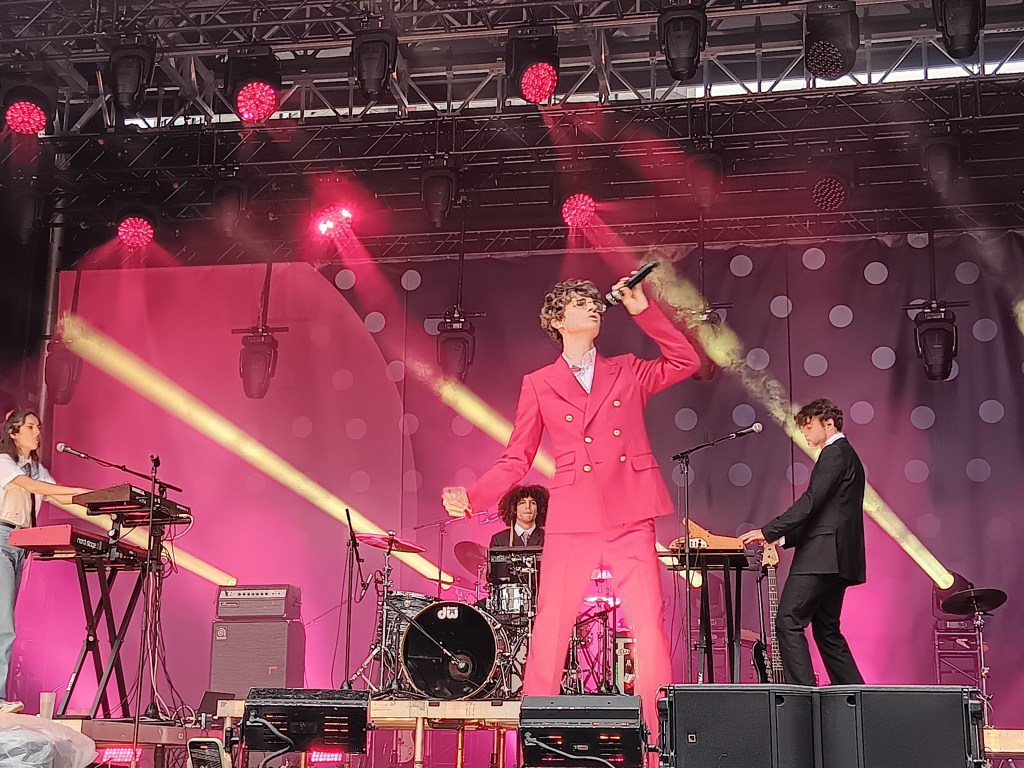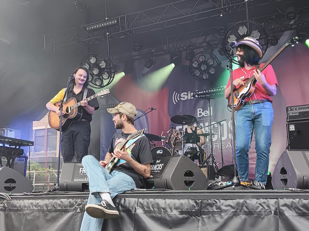 L’album La fable de la grenouille dorée de Vendôme, le groupe formé de Cédrik St-Onge, Marco Ema, Tom Chicoine et Bruno St-Laurent, est fait pour l’été. L’amitié et l’approche ludique des membres sont aussi parfaites pour un spectacle détendu dans la chaleur et la luminosité d’un début de soirée. Mais attends, ce n’est pas Tom Chicoine à la guitare? Il y avait quelqu’un qui faisait semblant d’être le musicien country, en portant une perruque, une fausse moustache et un chapeau de cowboy. Quand il parlait, il mit l’accent sur le fait qu’il était Tom Chicoine, en faisant sa voix plus grave aussi, mais il y avait un air de mystère. Puis, plus tard, il a dévoilé sa vraie identité et tout le monde était comme ohh c’est drôle! Même si Tom Chicoine a joué le dimanche sur la scène Loto Québec pour son projet solo, il ne pouvait plus être présent le mercredi pour le spectacle de Vendôme sur la scène SiriusXM. Par contre, c’était Jérémie Essiambre, mieux connu comme l’auteur-compositeur-interprète La Faune, qui a pris sa place.