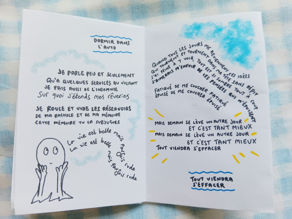 Un p’tite zine pour si jamais t’as besoin de réconfort parce que la musique de Daniel Bélanger est parfaite pour nous faire sentir moins seuls dans la vie 🧸