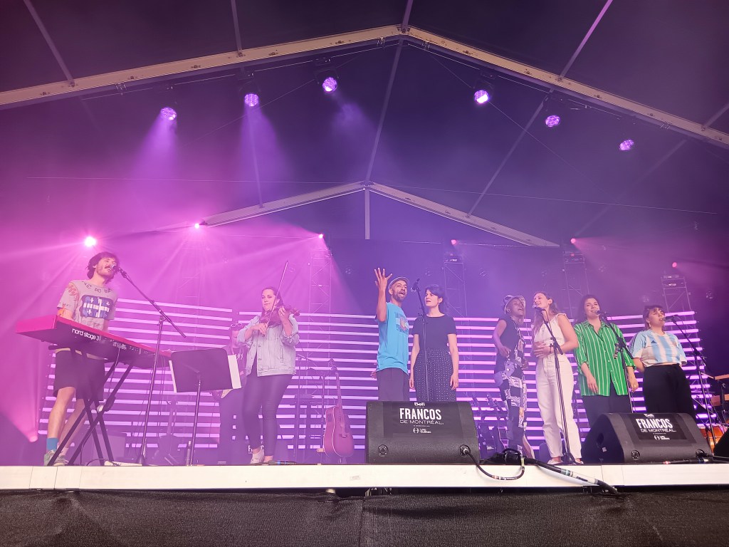 Le spectacle des chansonneurs et chansonneures des Escales en chanson de Petite-Vallée aux Francos de Montréal était l’introduction puisque ils ont joué leur propres chansons qui sont déjà sorties. Si tu les a vu en spectacle après ça, que ce soit à Québec ou au Festival en chanson de Petite Vallée, t’aurais vu ce qu’ils avaient nouvellement créés ensemble et le voyage collaboratif qu’ils ont vécu.