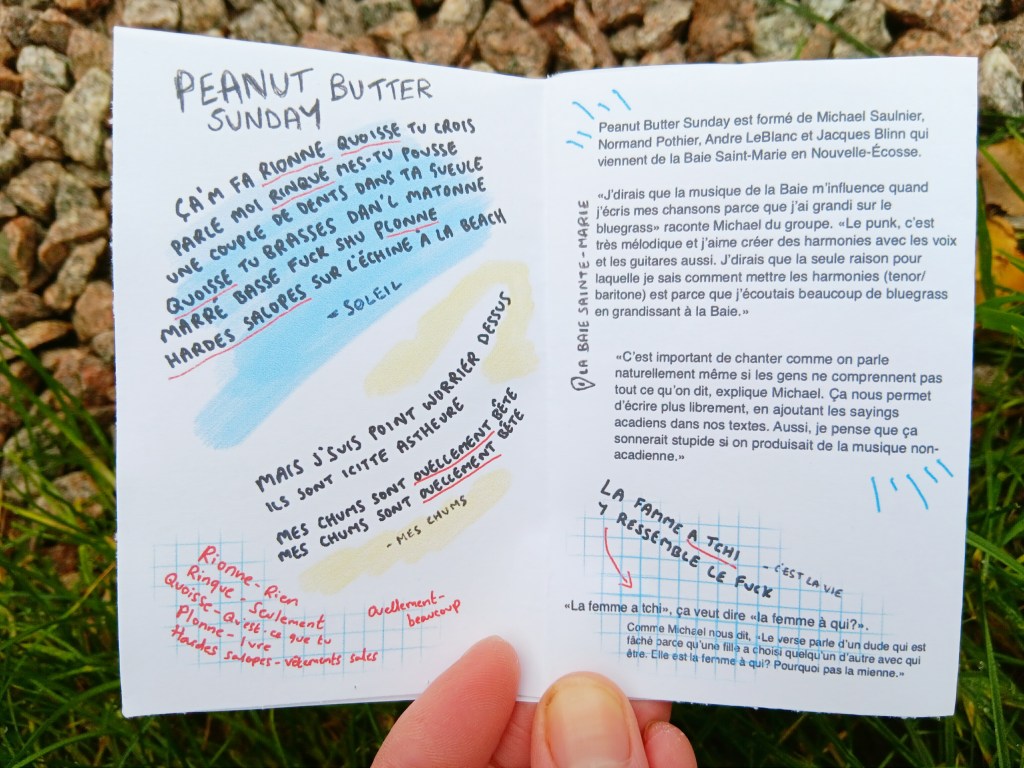 Les coins de l’Acadie: un zine Posted on November 4, 2023November 4, 2023 by Frankie Rose Voici un zine avec quelques entrevues de cette année ✌️ ———————————————————————————————————————— ———————————————————————————————————————— Related