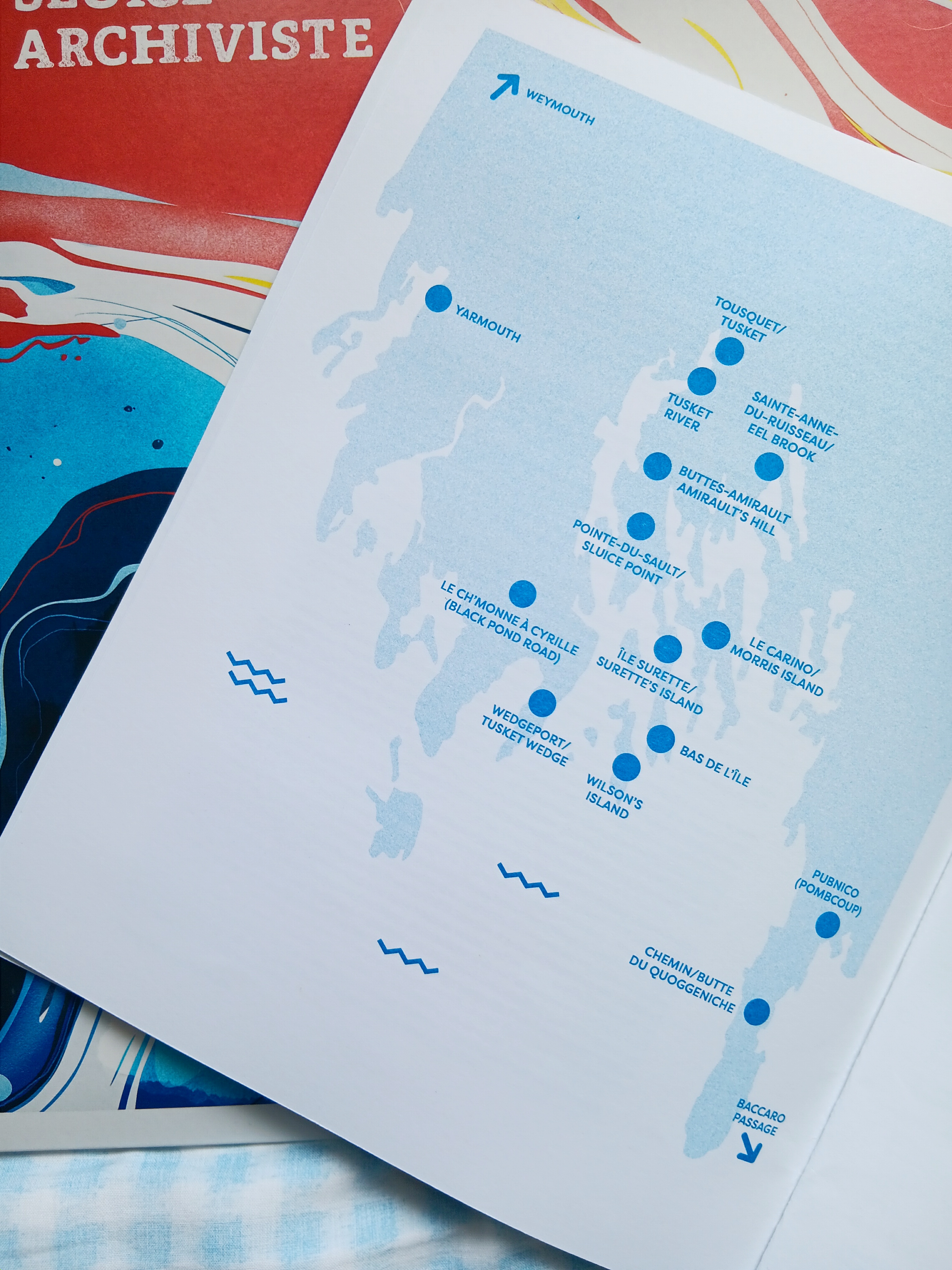 D’autres endroits qui sont explorés dans l’album sont Black Pond Road, connu auparavant comme le Chemin à Cyrille (Le ch’monne à Cyrille), les origines du village de Tusket (Paradis sur la côte), et Wedgeport pendant l’année historique de 1888 (L’année des trois huits).